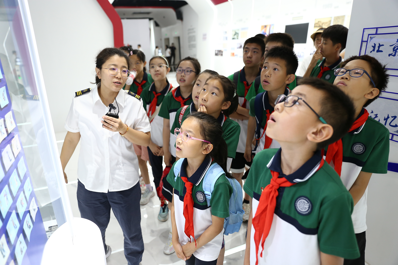 隨后,一行人來到4層參觀廳繼續參觀,小學生們從玻璃幕墻俯瞰一期調度指揮大廳,被眼前壯觀的景象所深深震撼,通過講解人員聲情并茂地講解,小學生們了解了北京軌道交通的調度指揮運營系統,紛紛感嘆軌道交通運營的“神奇”。